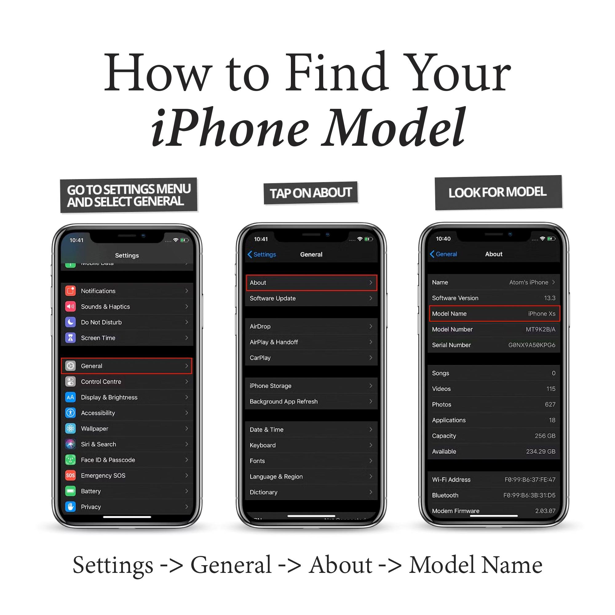 Settings → General → About → Model Name