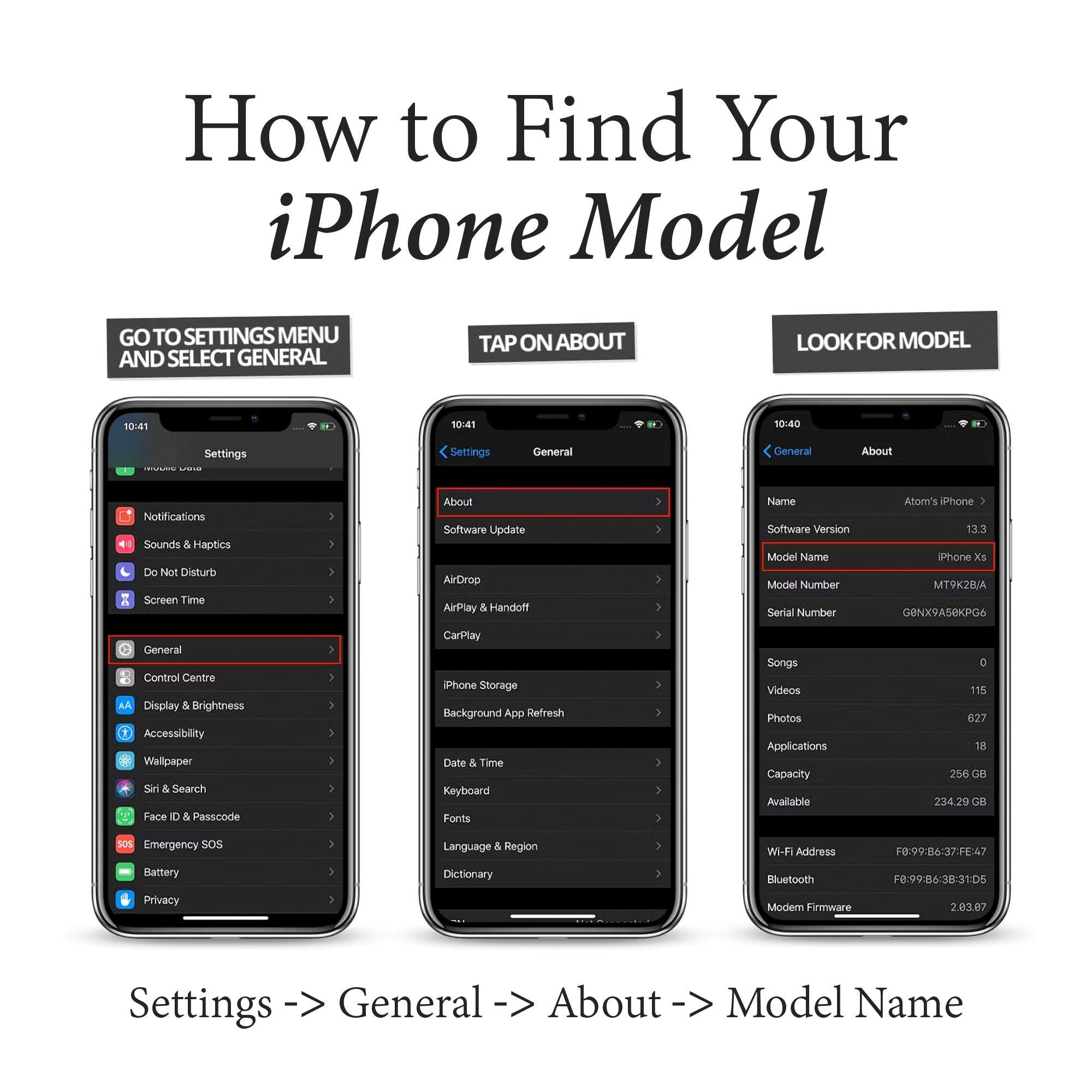 Settings → General → About → Model Name